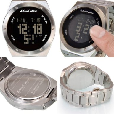 BLACK DICE: SLICK features a black oversized solid stainless steel case & wristband with a bold & stylish design. It stands apart from other watches with its state of the art multifunction digital touchscreen display with features such as: Alarm, Stopwatch, Countdown timer, World time, Calendar and more!